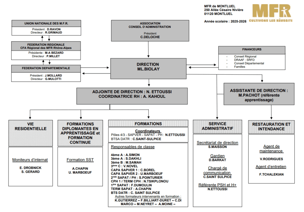 Tous les membres de l’association (essentiellement les familles), constitués en assemblée générale, élisent un conseil d’administration qui assure la gestion matérielle et morale de la Maison familiale rurale.